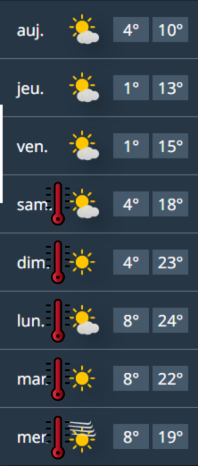 Figure 1 : Prévision météo pour Genève entre le mercredi 01.04 (aujourd'hui) et le mercredi 08.04 / Source : MétéoSuisse