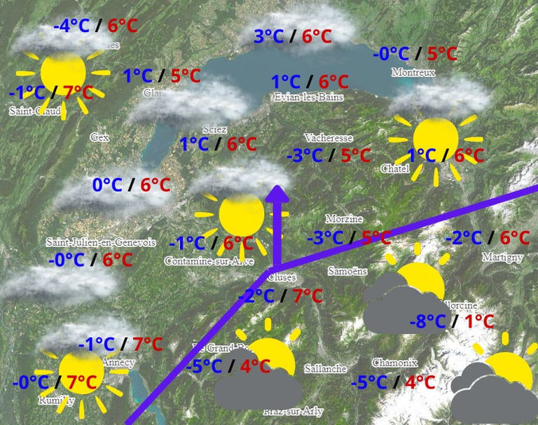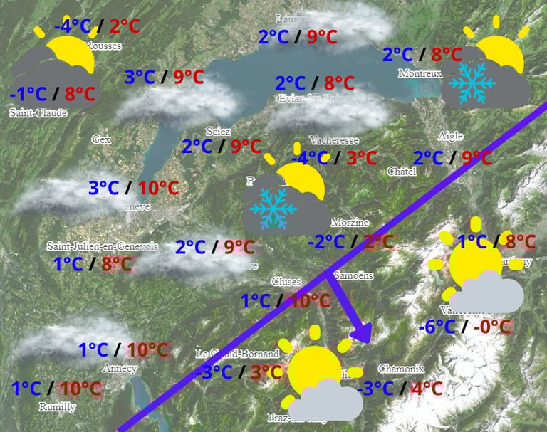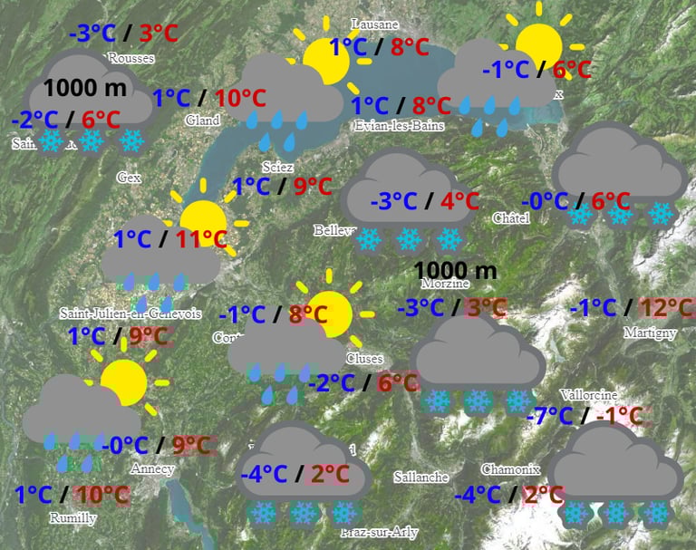 Prévisions et alertes pour la région Chablais-Léman.
