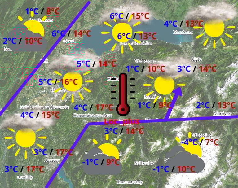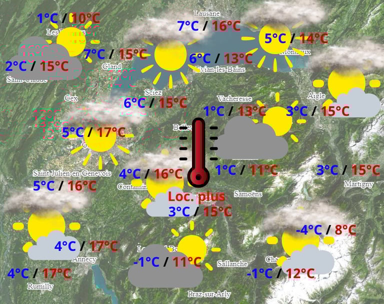 Découvrez nos prévisions, alertes et actualités sur la météo de la région Chablais-Léman et Côte d'Azur (en été).
